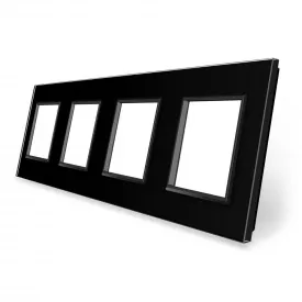 Рамка розетки Livolo 4 посту чорне скло (VL-C7-SR/SR/SR/SR-12)