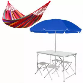 Комплект туристический раскладной стол и 4 стула Crystal 120х60х70 в чемодане Light Wood + Складной мангал