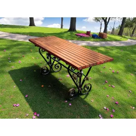 Стіл кований садовий Камелія для дачі, тераси, альтанки 1700х700х800 мм, колір Махагоній