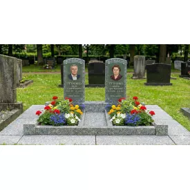 Подвійний пам'ятник із сірого граніту з майданчиком