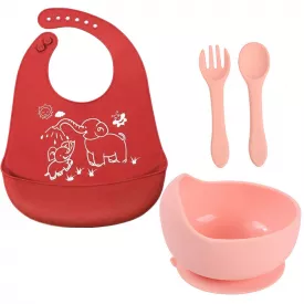 Набір силіконова тарілка килимок для годування дитини 22х15 см та слинявчик ПВХ Рожевий (vol-1071)