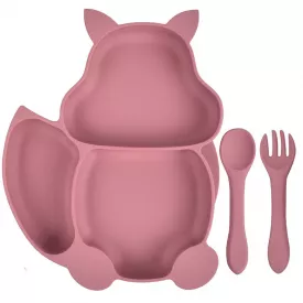 Набор силиконовая трех-секционная тарелка в форме белки и ложка 2Life Y14 2 шт Розовый (vol-10006)
