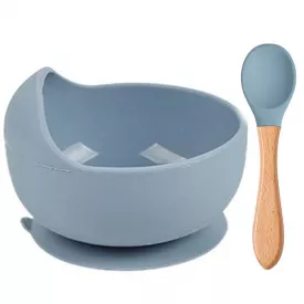 Набор силиконовая круглая тарелка для первых блюд и ложка 2Life Y23 2 шт Серый (vol-10170)