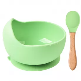 Набор силиконовая круглая тарелка для первых блюд и ложка 2Life Y7 2 шт Зеленый (vol-10175)