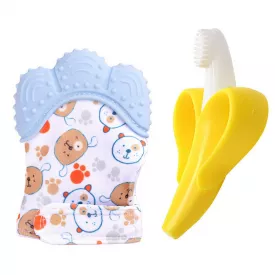 Дитячий силіконовий прорізувач-рукавичка для зубів Рожевий + Прорізувач-щітка Банан VOLRO (vol-1448)