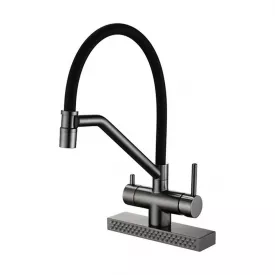 Змішувач для кухні під осмос з водоспадом KB-74027-07 (графіт) силіконовий чорний гусак, Чехія