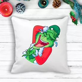 Подушка с новогодним принтом Гринч The Grinch "Смеется" Белый Кавун П003613