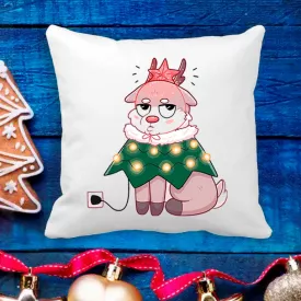 Подушка с новогодним принтом Олененок в новогодней накидке Белый Кавун П003647