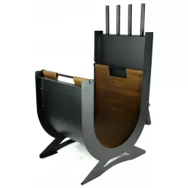 Набір для каміна з дровницею та сумкою для дров з натуральної шкіри Ferrum Перун 4 інструменти Чорний (883)