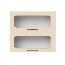 Навісна шафа-вітрина (дводверна - двері горизонтальна) (скло 4 мм) ширина 900 МАКСІ МЕБЛІ Сірий/Ваніль (80032)