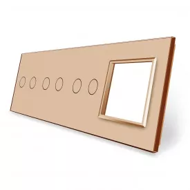 Сенсорна панель вимикача 6 сенсорів та розетку (2-2-2-0) золото скло Livolo (VL-P702/02/02/E-8A)