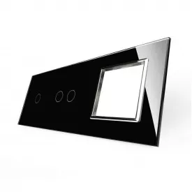Сенсорна панель комбінована для вимикача 3 сенсора 1 розетка (1-2-0) чорний хром скло Livolo