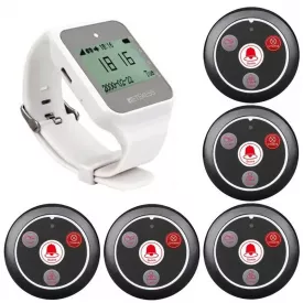 Система вызова официанта беспроводная с черными часами - пейджером Retekess TD108 + 5 черных кнопок (с кнопкой КАЛЬЯН) (100759)