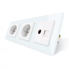 Розетка тримісна комбінована Силова Інтернет ТВ Livolo білий скло (VL-C7C2EU1C1V-11)