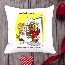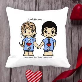 Подушка с принтом Love is " Любовь это ... понимать друг друга с полуслова" Белый Кавун П000053