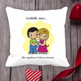 Подушка с принтом Love is "Любовь это... две трубки в одном стакане" Белый Кавун П000090