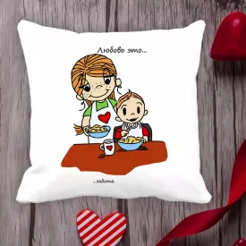 Подушка с принтом Love is "Любовь это ... забота" Белый Кавун П000046