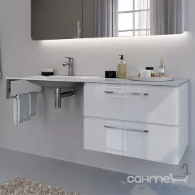 Консоль Marsan Adele 150 Вариант 2 раковина матовый искусственный камень, тумба 700 справа, бисмарк глянец