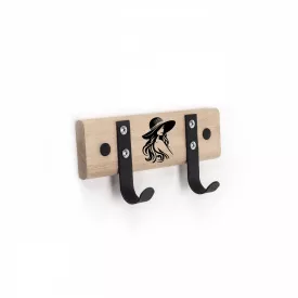 Вішалка настінна з натурального дерева на 7 гачків з магнітами власного виробництва ялина+модрина 56х30 см