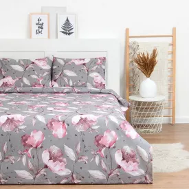 Постельное белье Кот Муркот Семейный Светло-серый с нежными ветками розовых цветков (VD_Фелісіті_С)