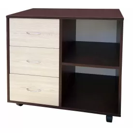Тумба имеет достаточно элегантный фасад и интересные по дизайну ручки. Хотя она и небольшая по размеру, но за счет 2-х полочек и шухлядок очень практичная для мелких вещей. Я довольна!