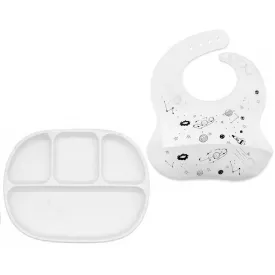 Набор детской посуды 2Life Волна тарілка та прибори Y1 та слинявчик Букви Білий (v-12068)