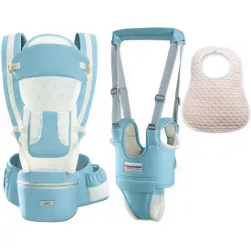 Хипсит эрго-рюкзак кенгуру переноска + детские вожжи-ходунки Baby Carrier 20 кг 6 в 1 Мятный (vol-9853)