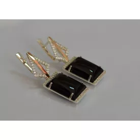 Серебряные серьги с кабашонами 146s-3 Черный (Sil-1148)