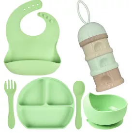 Набор детской посуды 2Life Волна Y12 8 предметів та прорізувач Динозавр Рожевий (v-12052)