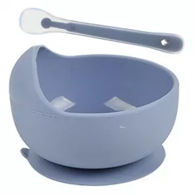 Набор силиконовая круглая тарелка для первых блюд ложка 2Life Y5 2 шт Голубой (vol-10118)