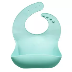 Детский слюнявчик силиконовый с четырьмя застежками и карманом VOLRO 30х23 см Мятный (vol-9693)