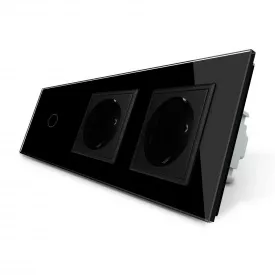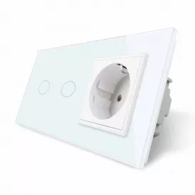 Сенсорний прохідний вимикач Livolo 2 каналу з розеткою білий скло (VL-C702S/C7C1EU-11)