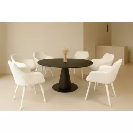 Комплект стільців обідніх Осло М-235 (2 шт.) з підлокітниками, для їдальні, кухні, фактурна тканина Ніжно-білий/білий, 850х600х610 мм