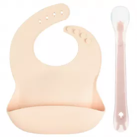 Силиконовый слюнявчик и термочувствительная ложка вилка 2Life 3 предмета Желтый (vol-10509)