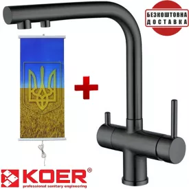 Змішувач для кухні з виходом під осмос Koer KB-72001-07, Чехія (колір графіт) + подарунок Картина-обігрівач