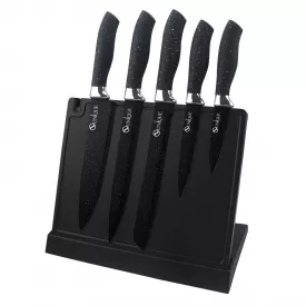 Набор кухонных ножей из нержавеющей стали с магнитной подставкой UNIQUE UN-1841-KS 6 предметов + точилка Черный | 1148 грн |