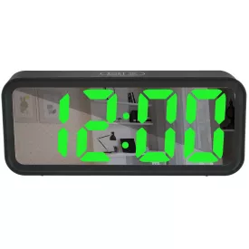 Годинники настільні електронні RIAS DT-6508 дзеркальні з будильником та термометром Green Light Black (3_00823)