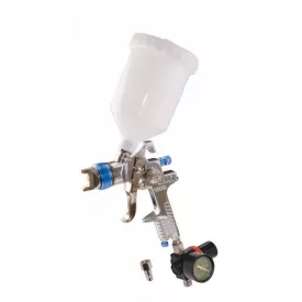Краскопульт MASTERTOOL HVLP ВБ 600 мл пластик Ø1.4 мм 150-220 л/хв 3-4 бар з манометром тип А 80-8910 1223 грн/шт Купити