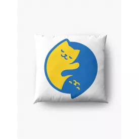 Подушка декоративная с принтом "Украинские коты Инь и Ян синий и желтый 2" Белый Кавун П000431