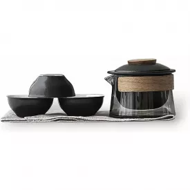 Дорожный чайный набор No Brand CX-3365 Black заварник и 6 пиал с чехлом 310 мл
