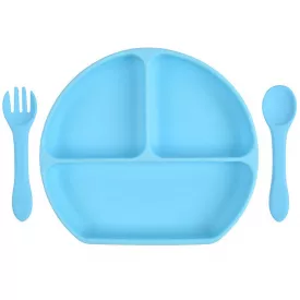 Набор силиконовая трех-секционная тарелка и ложка с удержанием формы 2Life Y5 Голубой (vol-10048)