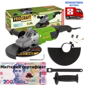 Машина кутошліфувальна Procraft PW2650 230 мм (плавний пуск) + сертифікат | 3720 грн |