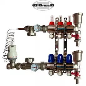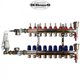 Колекторний вузол у зборі для системи "ТЕПЛА ПІДЛОГА" GROSS на 9 виходів 2 зливні групи (Німеччина)