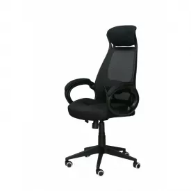 Крісло офісне Briz black чорне сітчасте з підголівником і м'якими підлокітниками для роботи за комп'ютером