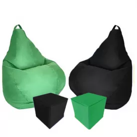 Комплект кресло-мешок груша 120x90 см 2 шт + 2 пуфа 30x30 см Tia-Sport зеленый/черный (sm-0619-21)