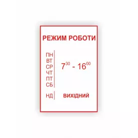 Табличка Vivay Режим роботи 30x20 см (hub_xjb60r)