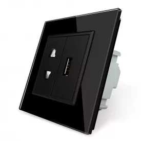 Розетка універсальна з USB розеткою чорний скло Livolo (VL-C7C1AUSB-12)