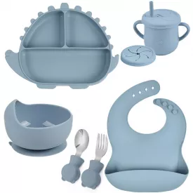 Набор детской посуды 2Life Волна Y19 8 предметів та прорізувач Динозавр Бордовий (v-12054)