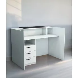 Стійка адміністратора пряма Tobi Sho Ресепшн/4 лівостороння для офісу, салону з підсвічуванням, 1400х600х1050 Дуб крафт білий/Чорний