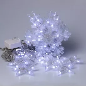 Гирлянда снежинки на батарейках Led белая теплая 5 метров 40